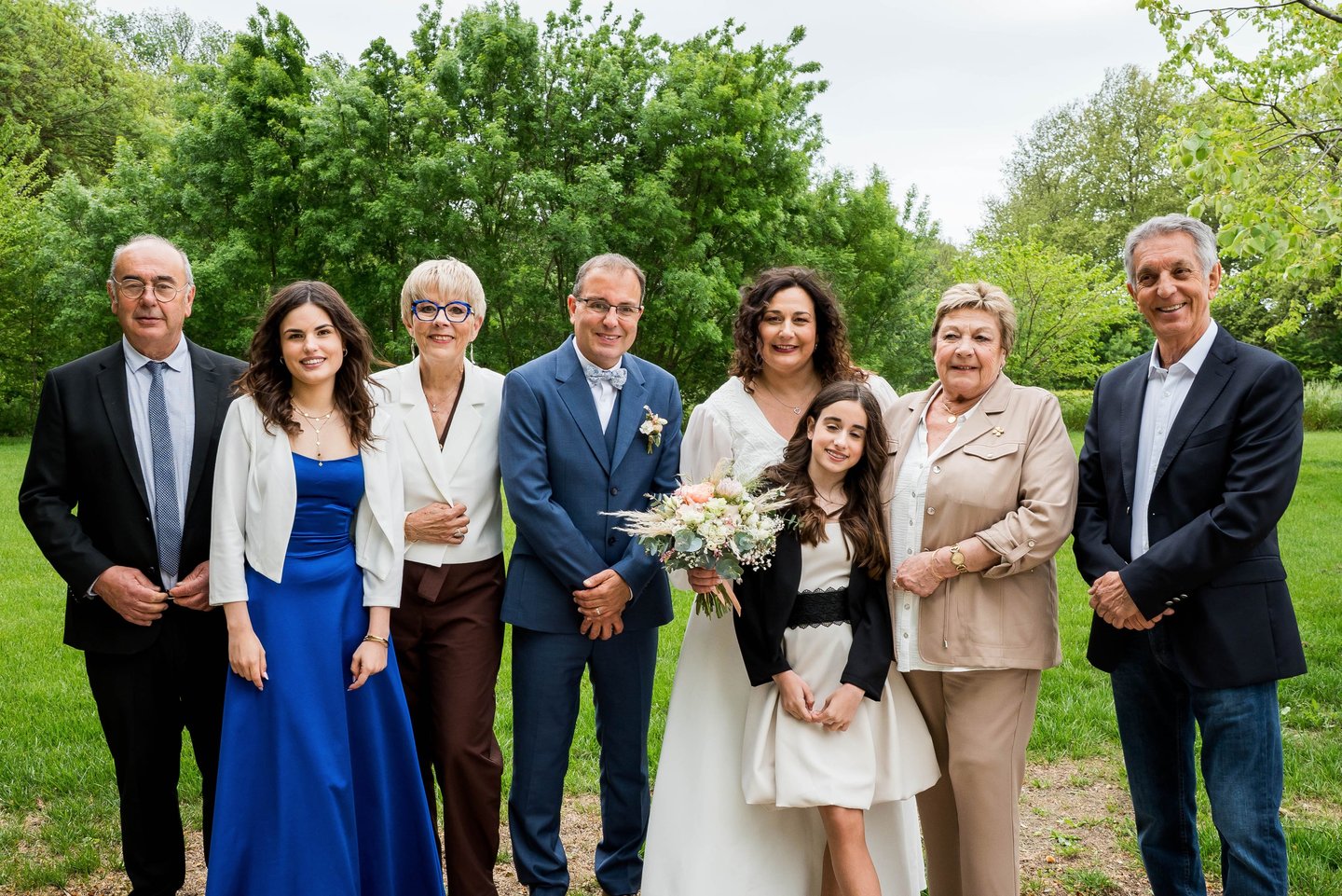 Pour des souvenirs intemporels, les photos de groupe classiques sont parfaites. Elles mettent en valeur l'élégance de vos invités dans un cadre harmonieux et bien organisé.